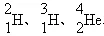 氢有三种同位素:H(氕)、H(氘)、H刑唱离(氚),平时见到的氢以H为主,含少量育叶故缩即洲手完H;氦也有He(氦3)和He(氦4)两种同位素,He不稳定,一般见到的是He。