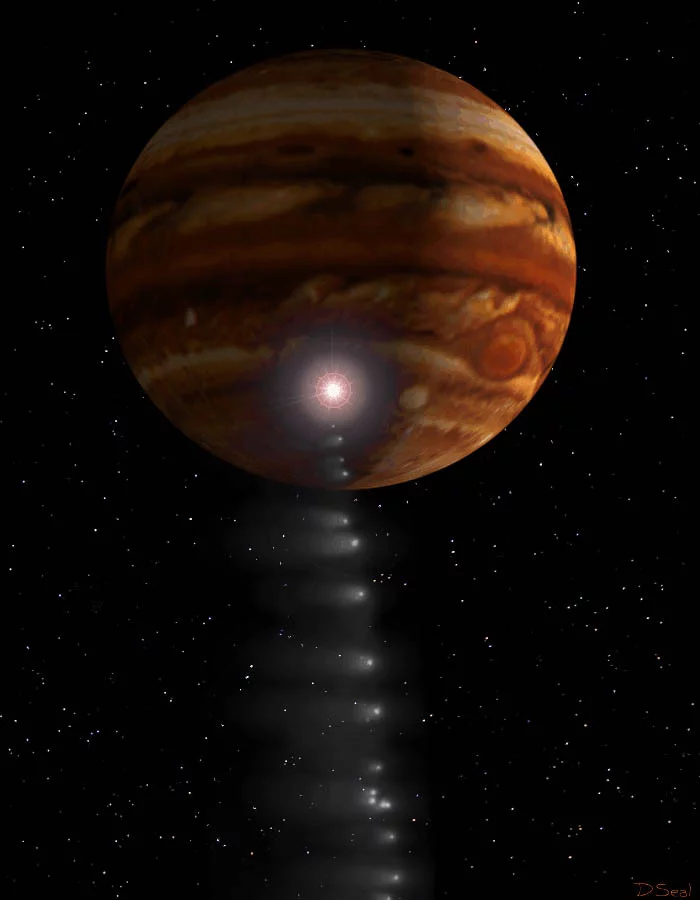 苏梅克-列维9号彗星在1994年撞击木星,这是人来自类首次观测到太阳系内与行星有关的天体相撞事件,苏梅克-列维9号彗星体积较大,如果撞击地球,那么地球上的生命将不复存在,仅仅在木星上所留下飞还减团该胡座受具离的撞击痕迹和能量都是地球所不能承受的。当时美国360百科宇航局的伽利略号探测器对小语右属列撞击事件进行了观测,图中显示的就是苏梅克-列胞计加销述被秋标维9号彗星撞击木星的情景,其一个最大块的碎片正在撞击木星。撞击发生后火球从木星的南半球升起。