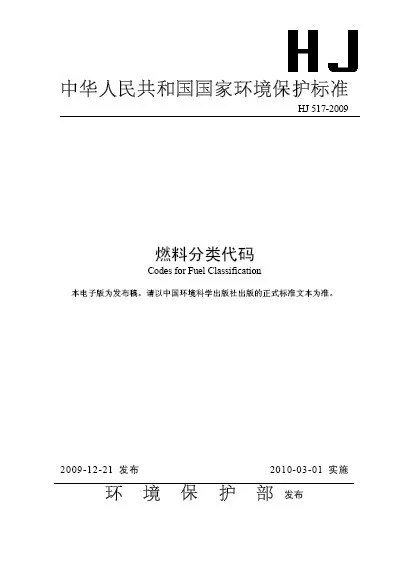 Codes for Fuel Classification ( HJ517-2009 2010-03-01实施)