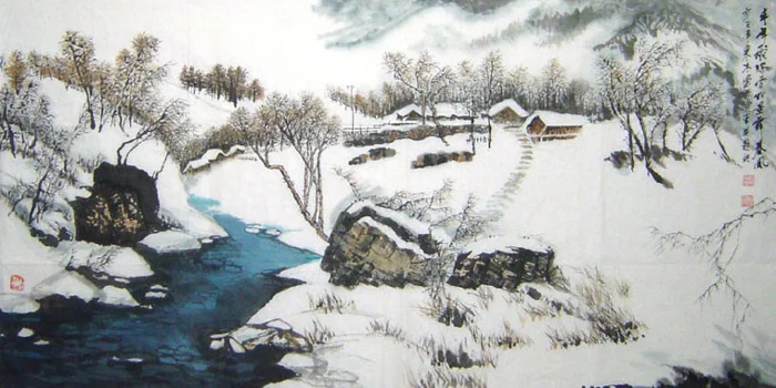这首诗为读者绘制了一幅湖山雪景图。画中有人物,有风景,有动,有静,有声,有色,通过视觉、听觉、触觉等多方面描写,把冬季严寒的意境刻画了出来,是描绘冬景诗中的妙品。