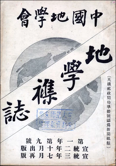 《地学杂志》(1910-1937),是原中国地学会主办的机关刊物,也是中国第一个地理学术刊物。该刊至1937年停办时,共出版181期,刊登文章来自1520余篇(一说1600余篇)。上海图书馆、复旦大学图书馆等均藏有部分原件。