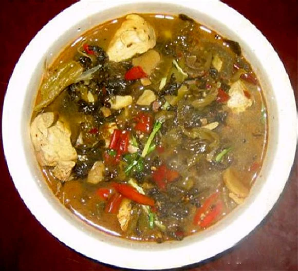 来自 "苗家不吃酸,走路打踉跄。"可见,酸食在苗家生活饮食中的重要地位。在长期的战乱和频繁的大迁徙中,由于历史的特殊地位,养成了苗家喜吃酸食的习俗。酸菜煮水豆腐,360百科是苗家的主菜。制作简便,其味无穷。