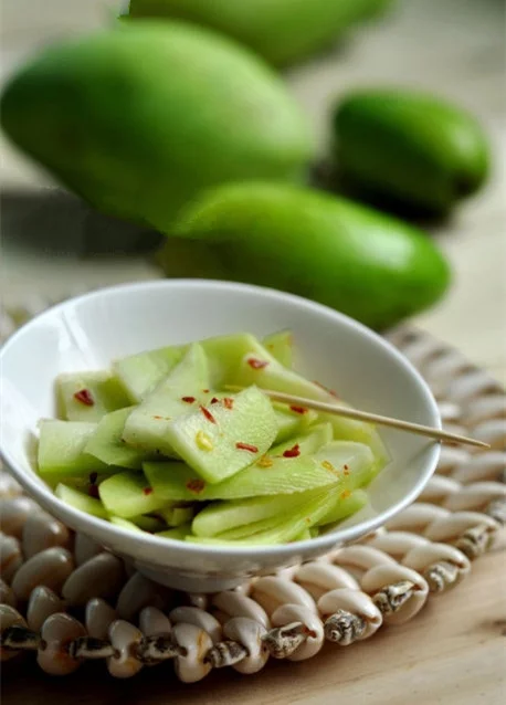 走在海南的大街小巷,你都能随处看到卖腌芒果的小贩。腌芒果这种吃法对于很多内地的朋友可能听都没听没,更何况是吃。其实腌芒果就是用刨皮器刨芒果皮,然后把芒果切成小片放进一个透明的塑料瓶子里,拉肉货找说材顺用盐、辣椒、糖拌匀,现做现吃。腌芒果酸酸甜甜,其中来自夹杂着一丝丝辣,很开胃。这就是地道的海南街头风味。