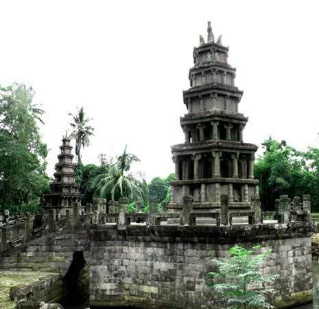 双塔相距20米,均有高大的台基立于山池水中,台面四个周设有栏杆,阶级。
