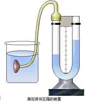 液体压强的测量的仪器叫U形管压强计,利用液体压强公式P=phg,h为两液面的高度差,计算液面差产生的压强就等于液体内部压强