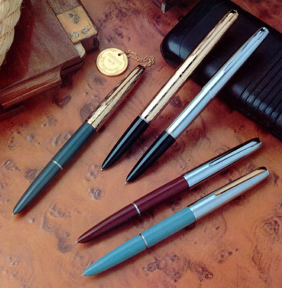 100英雄由华孚金笔厂(英雄金笔厂前身)出产,笔尖材质为12K黄金,仿照派克51型金笔设计