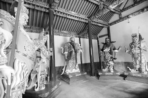 娘娘殿左右偏殿,祀着她的爱子关平与关兴,还有兄弟俩的配偶。四位侍者形象秀逸淡雅,雕塑语言很精练,十分耐看。