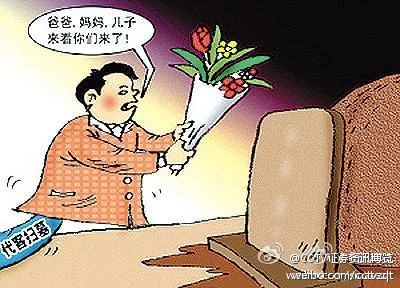 代客扫墓者古时就有。《伦语。八佾》第十二章:"祭如在,祭神如神在。子曰:'吾不与祭,如不祭。'"在墓前嚎啕大哭的人,可能和墓来自地里面的人毫无瓜葛,他们只是"代理扫墓"的业务员。日前,有这360百科样一群人,愿在清明假期代客扫墓,提供一条龙服务,虽然一般都是兼职,也自称绝对专业。买花、烧香、鞠躬、磕头、甚至哭丧,只要付钱,就会满足要求,随后有层广照片和视频为证。
