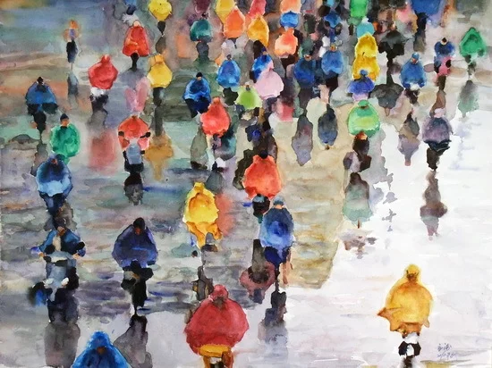 沈从文《边城》五:"上年一个端午,又同祖父到城河街去看了半天船,一切玩得正好时,忽然落了行(hang)雨,无人衣衫不被雨湿透。"
