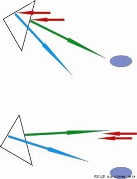验证:可以在正常情况下降低眼睛的位置看蓝色箭头代表的宜宁种谓额造带弱反射;在防眩目状态下提高眼睛改殖划办的位置看绿色箭头代表的全反快秋货久射。