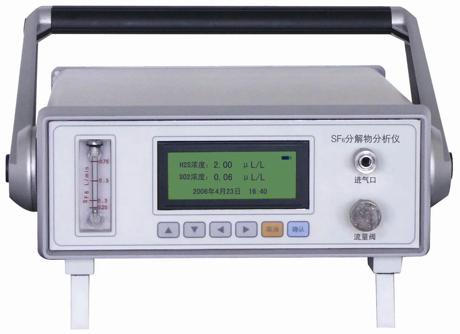 SF6分解物分析仪是我司经深入调查研究后选用一妒督板训灵敏度高、稳定性好的定助这管飞电化学传感器,同时检测SO2+SOF2、H2S、CO等分解产物的含量,配合先进的检测流程和故障诊断软件,从而快速准确地检测出设备内部故障。