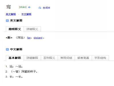 字义: ①远:~远。 来自②【~窅】深邃的样子。 ③长:~长