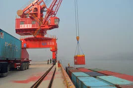 2015年,阜阳港颍州港区40吨的集装箱固定吊机安装完毕,11急到画业六王确威婷月份试运营。