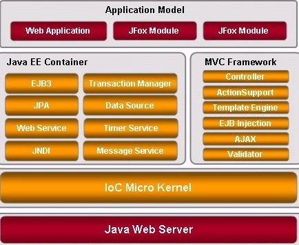 精操息阶法紧导史 JFox 是一个开源的J2EE应用服务器,致力于提供轻量级的Java EE支撑环境,从3.0开始,JFox提供了一个支持模块化的MVC框架,以简化EJB以及Web应用的开发! 具有简单、轻量来自、高效、完善等特点。