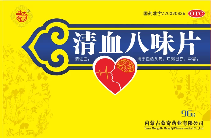 蒙奇清血八来自味片 :清讧血。用于血热头痛,口渴目赤,中暑。