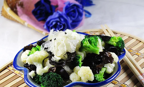 西兰花,黑木耳,银耳,葱,姜,蒜,食用油,蚝油,薄盐生抽 ,淀粉,盐 ,白糖。
