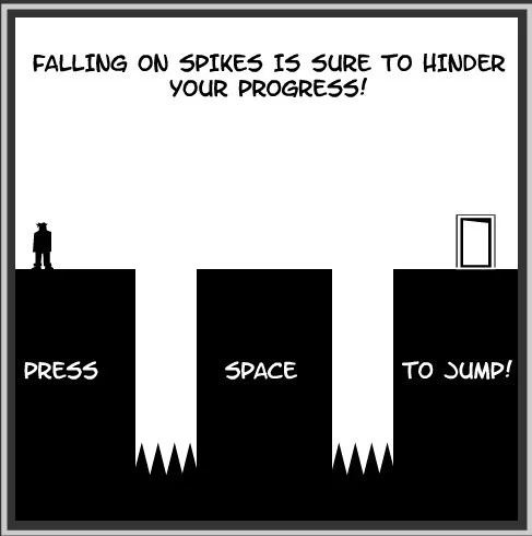设计很精巧的一个游戏,在玩的时候,让我想到了超囧字符游戏变态人生大冒险的场景,虽然看似很简单,但是想要过关,得颇动一番脑筋。游戏会用到方向键、空格和SHIFT键,你需要合理搭配,才能过关。之所以说这个游戏精巧,是因为在游戏过程中,SHIFT键起到了翻转黑白的作用。至于如何翻转,等你玩过就知道啦~~