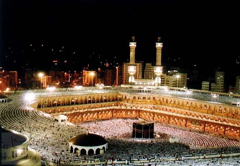 麦加大清真寺,穆斯林的圣地。易卜拉欣是伊斯兰教中传说的人物,他被称为"安拉的至交"。传说,当时易卜拉欣的父亲及其族人都崇拜偶像,为了让他们转而信仰真主安拉,易卜拉欣请求真主显示使尸骨腐烂之物复活的神昭。真主让易卜拉欣捉来4只鸟,将他们一一肢解,然后分别放到4座山峰上去。真主要易卜拉欣大声呼唤,他大喊了几声,飞鸟的各部分便自动聚集起来恢复原形,鸟儿又在蓝天上展翅翱翔了。人们见了这一幕心里虽然受到震动,可回到家里,却仍然供奉着偶像。易卜拉欣很着急,就跑到神庙里把那些玉雕、木刻、泥塑的偶像全部打翻捣烂。族人都气得发狂,把他捉起来,用粗绳五花大绑将他全身上下捆得严严实实,然后在广场燃起一堆熊熊大火,把易卜拉欣扔进火里,让他接受最严厉的惩罚。大火一下子就把绳索烧断了,而易卜拉欣却毫发未损,他从火堆里跳出来,继续宣扬着伊斯兰教的教义。人们惊呆了,终于跟随易卜拉欣,虔诚地诵读着《古兰经》,信奉起真主安拉来。"伊斯兰"意为"顺从",而教徒"穆斯林"即为"顺从者",随着信仰伊斯兰教的穆斯林不断增多,公元前18世纪,易卜拉欣和他的儿子伊斯梅尔监建了一座圣寺,以弘扬真主的法力和供人们朝觐礼拜,这就是位于沙特阿拉伯麦加城中心的伊斯兰教圣地--麦加大清真寺。又称克尔白圣寺,这里禁止凶杀,抢劫、械斗等,故又称为禁寺。经过多个世纪的扩建和修警,它的总面积已由起初的3万平方米扩大到2000年的16万平方米,可容30万穆斯林同时作礼拜。禁寺有25道大门,道道精雕细刻;7座尖塔,座座高耸入云,它们由24米高的围墙连接。从围墙到楼梯台阶以及整个地面都用洁白的大理石铺砌,无论是白日的骄阳还是夜晚的水银灯都使禁寺显得庄严肃穆,气度不凡。禁寺广场中央稍南,是巍峨的立方形圣殿。克尔白,意思是"方形房屋"。圣殿内三根顶柱昂然挺立,其东北侧装有两扇金门,高3米,宽2米,离地约2米,用286公斤赤金精工铸成。圣殿又称天房,终年用从天降下的黑丝绸帷幔蒙罩,帷幔中腰和门帘上用金银线绣有经文,帷幔每年更换一次,这一传统已绵延1300多年。天房外东南角一米半高处的墙上,用银框镶嵌着一块长约30厘米的陨石,即有名的玄石,呈褐色,略带微红,被穆斯林视为神物,相传它还是易卜拉欣时的遗物。朝觐者过时针方向游转天房走过此石时,都争先与之亲吻或举双手以示敬意。天房东面正对黑石处,有个四柱圆顶小阁,围以方形铜栅栏,阁中有易卜拉欣建造天房时留下的脚印。每年伊斯兰教历的十二月,世界各地虔诚的穆斯林都辛劳跋涉,千里迢迢来到麦加大清真寺朝圣,瞻仰真主真神和他们指点的圣地圣石。