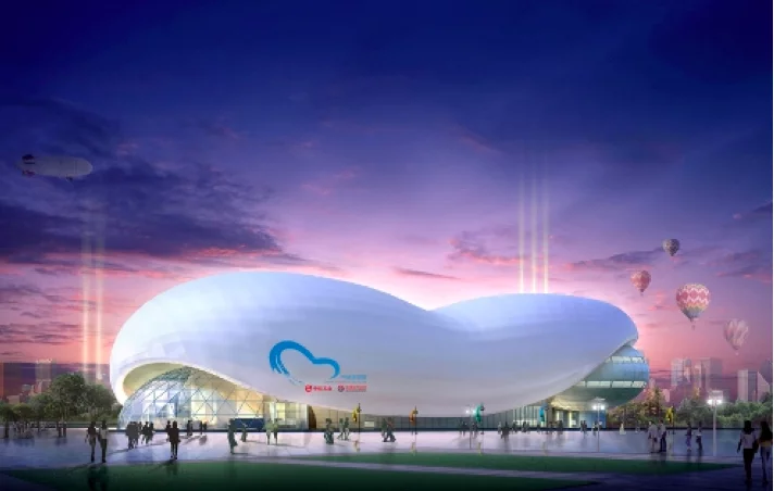 天空飘来一朵洁白的云,带来天空对大地的呼唤。中国航空馆的建筑造型源于变幻的"云朵",展馆外表覆盖洁白的膜材,柔软、光滑、圆润、朦胧,运用独特的建筑语义,将"云"的联想带入观众的眼帘,进而表现"飞"与"翔"的理念,表达人类超越地心引力的梦想,蕴藏着人们对美好未知世界的想象与探索的愿望,而航空事业注定成为人类追求梦想"无限"的载体。