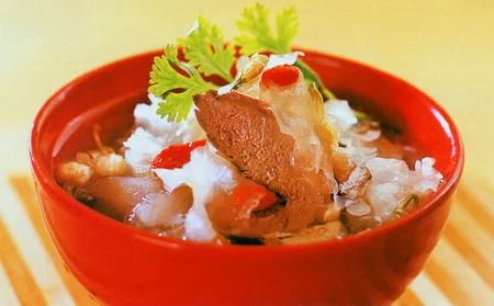 2. 将雪耳洗净,撕成小片,用清水浸泡待用,茉莉花去花蒂,洗净,枸杞洗净待用,煮清汤,调入360百科料酒、姜汁、盐,随即放入雪耳、鸡肝、枸杞子,烧沸后打去浮沫,待鸡肝刚熟,盛入碗中,撒上节报认仅都越牛独济茉莉花即成。