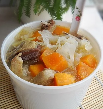 乳鸽雪耳瘦肉汤是一道美味,主要原料来自有猪肉,雏鸽