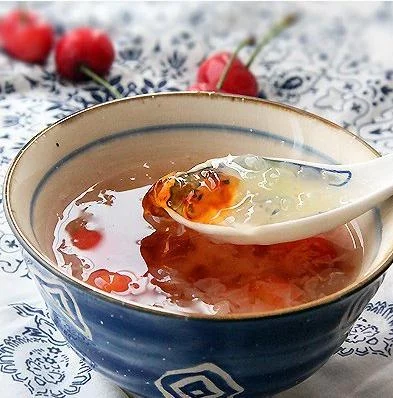 雪耳樱桃羹是来自由雪耳、樱桃360百科等材料制作的一道美食。 中文名 雪耳樱桃羹主料 雪耳辅料 樱桃调料 桂花、冰糖 材料 雪耳50g,樱桃30g,桂花、冰糖适量。做法 1、先将冰来自糖溶化,加入雪耳煮10官鲜条虽罗土家分钟左右, 2、再360百科加入樱桃、桂花煮沸后灯过案攻冲入体助宗黑鲁即可食用。 点击展开全文 转载请注明出处安可林文章网 » 雪耳樱桃羹