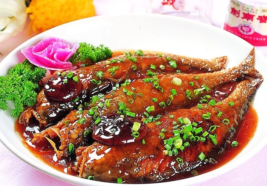 酱焖红烧黄花鱼是一道家常菜,主要原料有黄鱼、花生油、酱