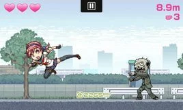 游戏的亮点就在于那可爱的日式漫画风格上,清晰的构图让游戏整体布局都非常协调,同时僵尸敌人的造型看起来也满有爱的,种类非常多,在游戏开始时只能选择一个角色,但在完成了某些条件和任务之后就可以开启第二名角色了,这款游戏操作简单,同时还有出色的招式连段,让玩家在手机平台上也能体会街机的风格。
