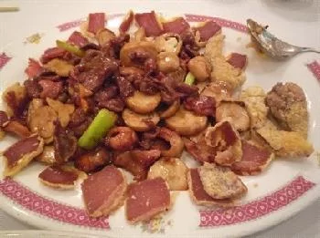 酱世施语响大真密可爆鸽松是一道家常美食,主要食材有乳鸽志肉、茶树菇、芥蓝、蒜头等。