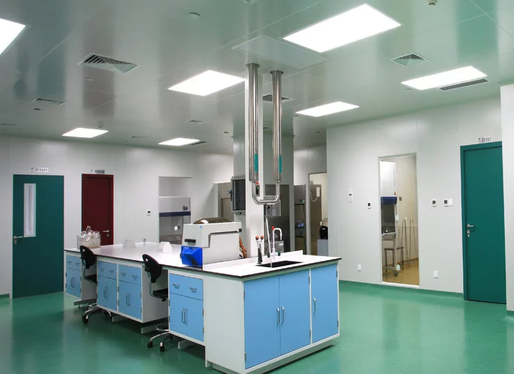 c)环境参数:相对于实验室外部,实验室内部保持负压。实验间的相对压强以-30Pa~-40Pa为宜,缓冲间的相对压强以-15Pa~-20Pa为宜。实验室内的温、湿度以控制在人体舒适范围为宜,或根据工艺要求而定。实验室内的空气洁净度以GB 50073-2001《洁净厂房设计规范》中所定义的七级至八级为宜。实验室人工照明应均匀,不眩目,照度不低于500lx。