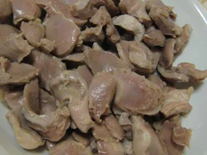 1、鸡胗子洗来自净、去掉老皮后备用。
