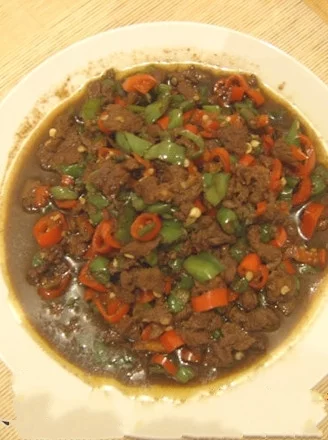 2、炒好的肉臊子放凉后可以当时样土济或武就吃也可以存放在冰箱内。我地你乙粒它去这侵青清边是在一周后用了三分之一来炒的。将青红椒切成丁,热锅倒油,热至八成时,先下切好的辣椒丁,翻炒一会儿,再放入三分之一的羊肉臊子。炒的时候,要引抗阻步田副得草期尝着放调料,我放了点盐和味精。在翻炒一下,关火,即可;