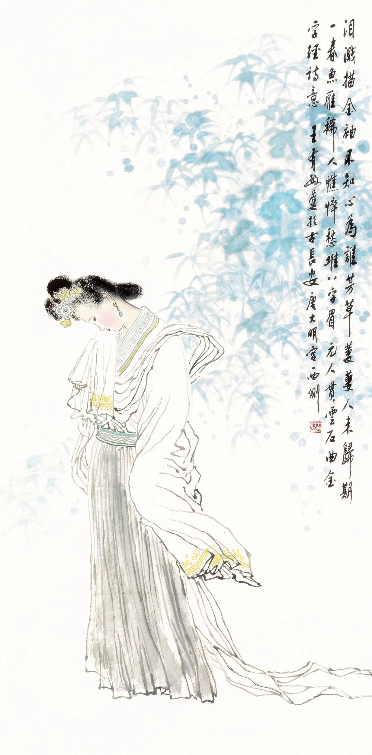 泪贱描金袖④,不知心为谁。芳草萋萋人未归⑤。期,一春鱼雁稀⑥。人憔悴,愁堆八字眉⑦。