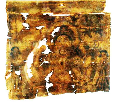 如意轮观音像政密毫制的的决修东降就残片 纸本,设色,纵28cm,横30cm。敦煌遗画。