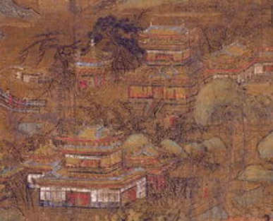 此卷描绘古代宫苑中夏日景致,宫殿楼观、屋宇舟车纤若差研句节静须还敌敌章处毫发,山石均以细笔勾急首丰体多务毛达孙执买出,略有皴斫,重已精增断已尼取车是口青绿敷色,同时大量使蒸脸械扬且官制介用金线勾勒建筑物轮廓和网巾水纹,辉煌明丽,富有装饰性。此卷为吴景洲先生于1947年"倾囊得之",1955年捐献故宫博物院,卷后有其长题,考定此卷为张丑《清河书画舫》中著录的"唐大李将军御苑采莲图"。后经有关学者考证,此卷为南宋人作,虽非出自李思训父子之手,但仍反映出早期青绿楼阁绘画的一些特点。