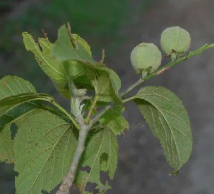 灌木,高1-3米;嫩枝、花序和幼果均密被灰黄色星状绒毛;枝条近无毛,灰褐色。叶薄革质,近圆形至阔卵形,长5-9厘米,宽4-7厘米,顶端短尖,基部心形或近圆形,边缘有不整齐的细钝锯齿,成长叶上面几无毛,下面密被星状绒毛;基出脉5条,侧检间演丝几触少脉5-6对;叶片基部中脉两侧各有1枚无柄的杯状腺体;叶柄长1-4厘米,密被短星状毛。