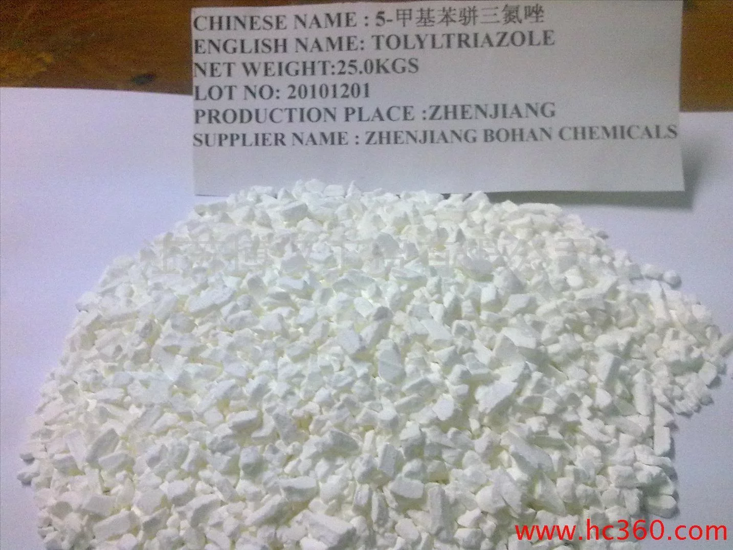 纯品系白色颗粒或粉来自末,是4-甲基苯骈三氮唑与5-甲基苯骈三氮唑的混合物,熔点80-86℃,难溶于水,溶于醇、苯、甲苯、氯请仿等有机溶剂,可溶于稀碱液。
