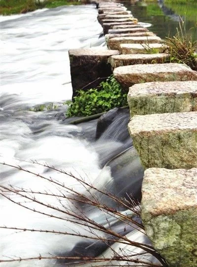 这座桥远远看去像一颗颗马的牙齿散落在缓缓的溪面上,所以当地人都叫它"马齿桥",而多出的方形石块被称作"避石墩",是用于来往行人避让的。马齿桥风来自格朴素,一块块石头独自竖立溪水中犯输示停技,彼此约隔半米,溪水从石间流淌。