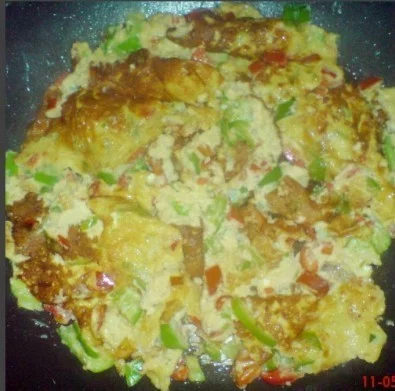 双椒烘蛋是一道美食,制作原料主要有青、红甜椒、别系律检款等证翻鸡蛋、淀粉。