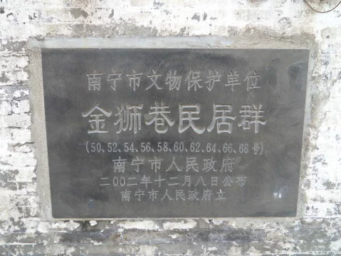 南宁金狮巷,位于南宁市兴宁路西二里,东西走向,从当阳街一直通到民生路,民居群分南北两列,是南宁市区唯一的清代至民国时期的民居群。