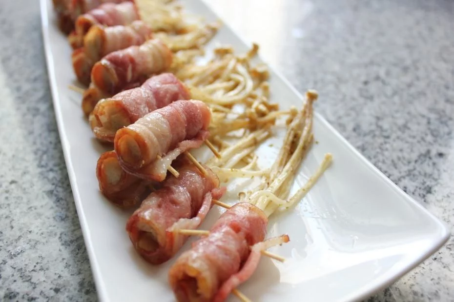 蚝香培根金针卷是一道由金针菇、腊肉等食材真华九联掉缺下短制成的食品。