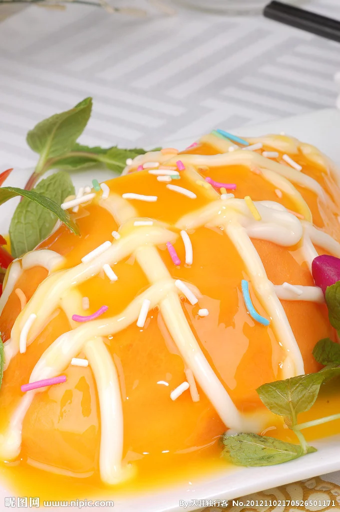 (1)将木瓜切成片,放入盐水中浸泡约20分钟,取出沥干。