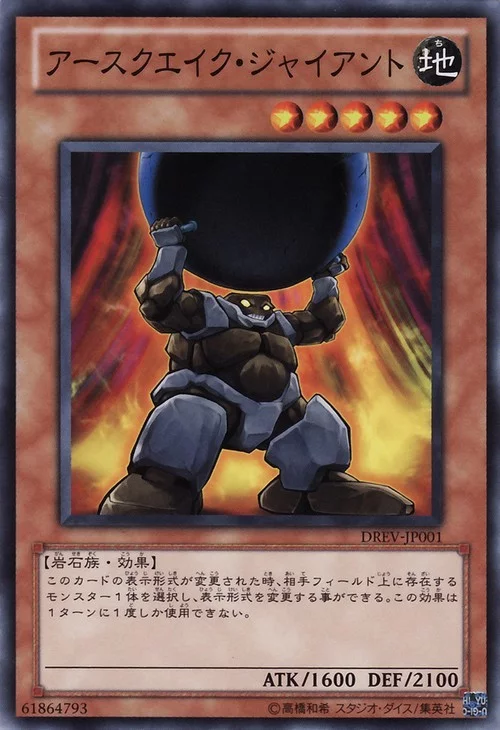 地震巨人,这张卡的表示形式变更时,可以选择对方场上存在的1只怪兽,把来自表示形式变更。这个效果1回合只能使用1次。
