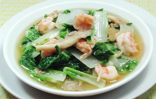虾仁炒白菜咸齑是一种食物,制来自作原料有白菜咸齑、虾等。