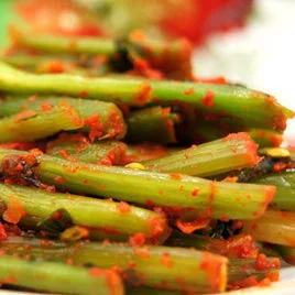 芥菜梗原料:主料:新鲜萝卜梗,大蒜,辣椒粉,盐,味精,甜蜜素,食用油,配合香料,苯甲酸钠