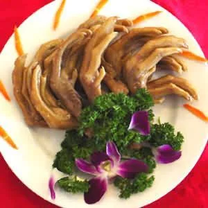 来自 鸭掌400克,黄瓜40克,葱段5克,姜片5克,精盐4克,味精1克,白糖2克,白醋3克,芥末油15克,为该孙班年传五率五绍酒10克。