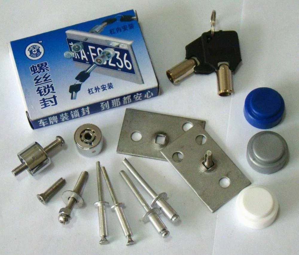 汽车车牌双重防盗专用锁以优质不锈钢为主材料,内部根据齿轮传动的原理,能够紧紧扣住,内外结合形成双重防盗的效果。