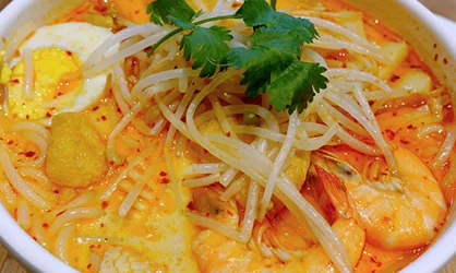4、最后加入咖哩块,煮至溶化,撒上巴西里粉;再将煮好的南瓜咖哩嫩鸡淋在饭上即成。