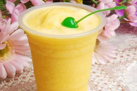 水蜜桃(罐头)150克,浓缩水蜜桃汁30毫升,蜂蜜善策35毫升,冰块1来自杯,白汽水30毫升。