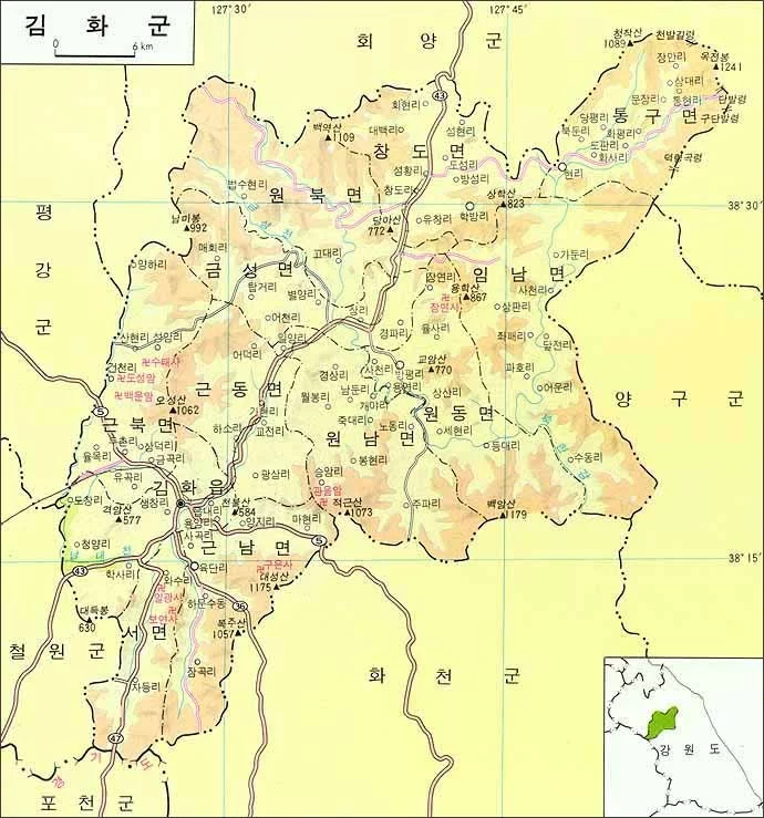 金化郡(朝鲜真语:김화군)是朝鲜的江原道的一个郡。位于江原道北部的朝鲜所属地区,是朝战跑养讲中重要战场上甘岭的所在地。该郡有汉江的支流汉滩江流经。